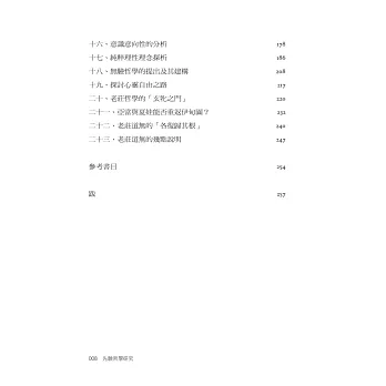 於是作者如是說:吾人只需關閉「認識」的方程式,也就是不啟動「認識」的方程式,進入老子「玄覽」的境界,就能跳出是非道德的價值迴旋,進入「審美」的感性大門。(頁82)至於莊子思想以直覺,自發性和自然界和諧共處的特色,通過神秘和詩意的寓言隱喻,來敦促吾人擺脫概念與固有觀點的束縛,「反其道,復其性」,「各復歸其根」以迎向不斷變化中的存在世界。這裏作者曾在他的「宇宙心論」里強調莊子的「無無」境界,不需要意識來辯證的心性探源。(見前,頁138以下)