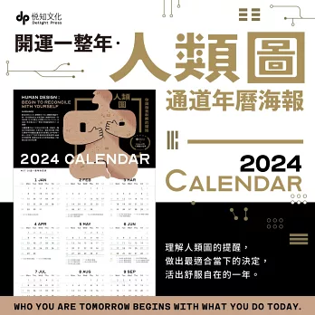 「開運一整年‧人類圖通道年曆海報」,以高雅柔和的凝雪歐采紙印刷而成,20.5 X42公分,收藏展示兩相宜。