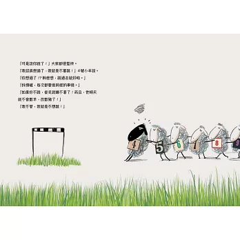 但是,4號小羊就是不想跳,牠躲在樹林裡、草叢中,就是不願意跳過柵欄。