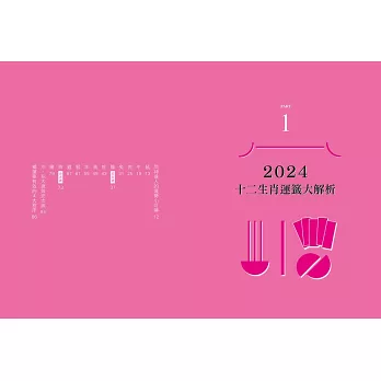 跳脫傳統農民曆深奧的內容,以淺顯易懂的方式為大家精選日常生活中,動土、安床、訂盟、納采、完聘、豎招牌、掛匾、神佛開光點眼、移徙、入宅、安香等所需要的好日子,更有補運解厄訣竅、開春求貴人、求財運、求學業和升遷、開工等祈福儀式的吉時和簡單做法。