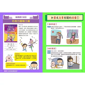 大人總是希望小孩「多讀書」,可是到底為什麼要讀書?閱讀有什麼好處?很難用三言兩語解釋清楚。《看漫畫輕鬆學:愛上閱讀的樂趣》用輕鬆有趣的漫畫故事、一目了然的知識圖解、簡單明確的實用技巧三個部分,輕鬆打開孩子的閱讀胃口,吸引孩子主動拿起書,並且願意一本接一本的讀下去。書中除了介紹許多和書有關的知識,還推薦了許多適合的好書、實用的閱讀訣竅、好玩的遊戲,讓孩子明白閱讀不但有趣,還能擴展想像力、創造力、學習力、理解力、感受力、溝通力、表達力,為自己開創無限可能的未來。