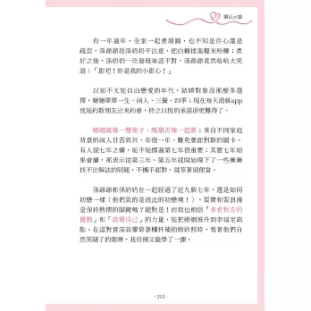 4歲喜歡一位幼稚園同班同學,因為他自告奮勇吃下我不敢吃的豆皮壽司。很抱歉,雖然升大班我就另結新歡了,但也開始累積各種戀愛/失戀經驗。三折肱為良醫,成長路上我因此時常擔任朋友們的愛情軍師或顧問;婚後,更幾度受託,希望我能傳授經營婚姻的撇步。