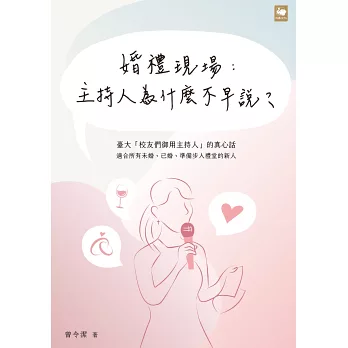無論你是想透過本書「第一次結婚就上手」的準新人,希望習得「掌握婚禮氣氛100種方法」的主持初心者,抑或是單純像我這樣熱中聆聽愛情百味的普通人類,相信都可以透過令潔輕鬆幽默的敘事,從籌辦婚禮的諸多細節中,一窺愛的各種樣貌,品嘗到幸福的閱讀時光,獲得珍惜平凡生活的能量。