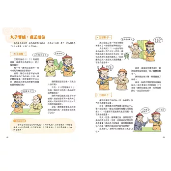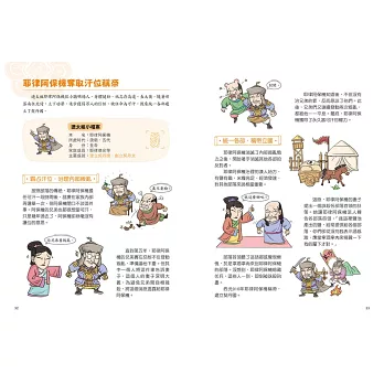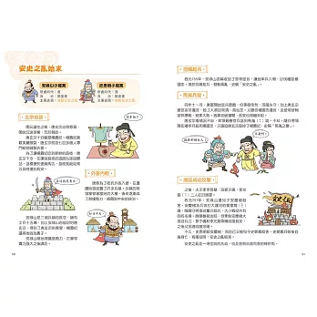 歷史好枯燥?年分好難記?還有超多人物到底誰是誰?只要看這套《漫畫朝代歷史》就不用煩惱了!拋開死記硬背的閱讀方式,透過淺顯的故事內容理解前因後果,再搭配生動的漫畫角色及幽默的對白,和古人們一起回顧歷史,彷彿坐上時光機並穿越時空,掉進不同朝代,體驗他們經歷的各種事件!