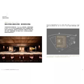 吧檯設計已成為一間餐廳的核心,除了滿足客人好奇心之外,還是一種娛樂效果,讓客人在等待的過程同時觀看一場做菜秀。蒐羅國內外具特殊的吧檯設計,以互動交流、最佳賞味、實用至上、異業結合四大應用形式,對應各種餐型類型,進而從設計策略、臨場互動、戲劇效果、實用效益四大面向做深入的解析與探討,看設計人如何運用創新設計為餐飲空間帶來新秩序與新體驗。