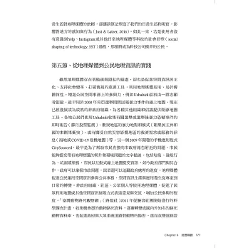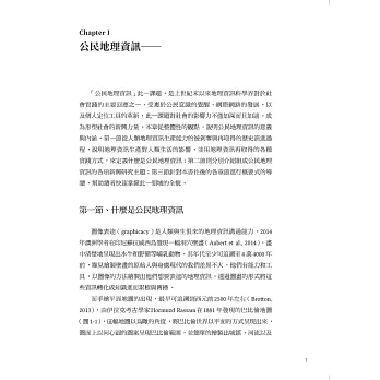 「公民地理資訊」研究課題,是上世紀末以來地理資訊科學界對於社會實踐的主要回應之一。受惠於公民意識的覺醒、網際網路的發展,以及空間定位工具的革新,公民地理資訊對社會的影響力不僅加深而且加速,成為形塑社會的新興力量。本書共分六章,第一章從整體性的觀點,說明公民地理資訊的意義與內涵,其餘各章分別論述組成公民地理資訊的各個新興研究課題,包括公眾參與地理資訊系統(public participation geographic information systems,PPGIS)、對抗性地圖(counter mapping)、自發性地理資訊(volunteered geographic information,VGI)、地理公民科學(geographical citizen science),以及這些課題所形成之地理媒體(geomedia)效應對社會的影響。總結來說,這些研究課題均擁有一個共同的理念,即如何讓一般民眾重新取回地理資訊的生產權力,並藉由這種由下而上的公民地理資訊落實公民社會的理想。