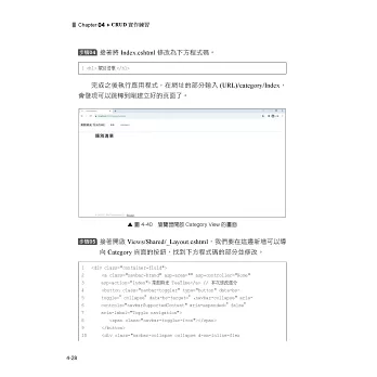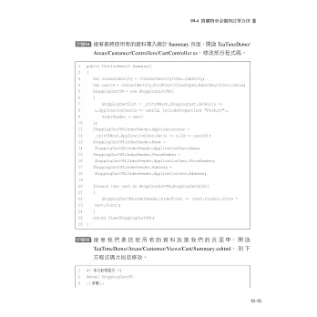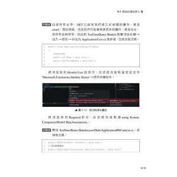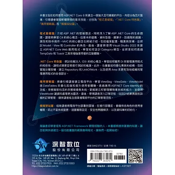 此書將建構多個項目來理解 .NET 8 中的基本概念。在前面章節中將使用ASP.NET Core Web 應用程式(Model-View-Controller)來學習Create(新增)、Read(閱讀)、Update(更新)、Delete (刪除)等資料基本操作。而實作章節則會帶領讀者開發電商線上平台的各個基本功能,如:會員系統、購物車、訂單管理等,從實作中學習如何開發應用程式。本書在實作範例時加入了許多知名且實用的套件,像是Toastr 和 DataTables等,帶領讀者一步步將套件引用至專案中,讀者可以根據需求和設計風格,來提高網頁的使用者體驗和美工設計,最後將會詳細介紹如何在Azure上部署應用程式。