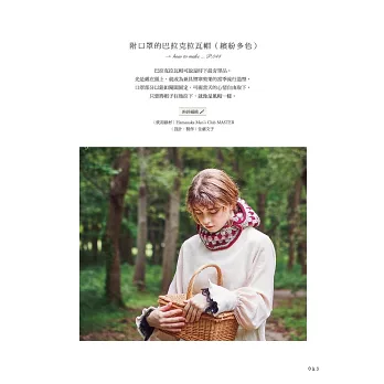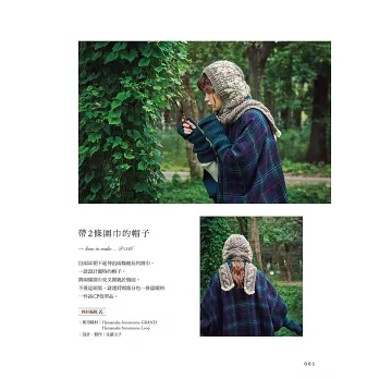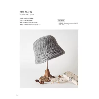 本書集結日本四位人氣手作家的設計,收錄19款作品,包含優雅經典的貝雷帽、報童帽、俐落的小禮帽、充滿休閒氛圍的鐘型帽,還有特地為長髮女孩設計的馬尾帽,以及時下這流行的巴拉克拉瓦帽。