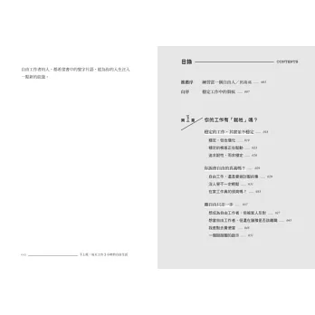 《不上班,每天工作3小時的自由生活》就像自由工作者的「腳踏車」,無論你尚在猶豫是否開始自由工作,或者已在自由工作的路途中,這本書都在你腳步游移之時,把可能碰到的疑難雜症一路攤開,協助按圖索驥,找出適合自己的行動方案。