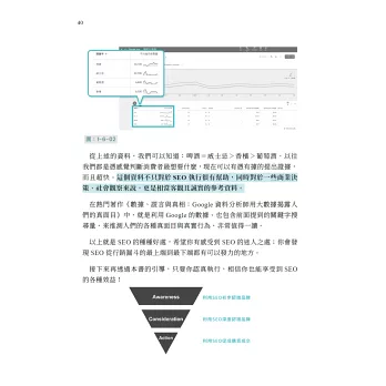 「本書由淺入深地引領讀者探索 Google 等具有搜尋功能的「莊家」背後的思考模式,以及 SEO 與其他行銷渠道的交融和其對商業的影響。通篇如同與作者對話,容易踏入的誤區已明確標註,而複雜的概念也透過生活化的案例加以解釋!」——SEO Manager|Overdose Digital 黃泓勳 Darren Huang