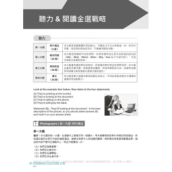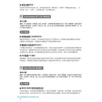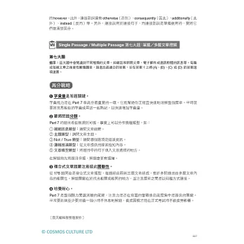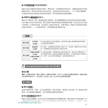 含五回模擬試題的完整中譯和逐題詳解,中英對照即看即懂試題內容。題目與中譯直接左右對照,無須往前翻閱,節省寶貴時間。此外,各題皆附詳盡解析,拆解說明各題型,讓你應考事半功倍。聽力試題隨附完整錄音文稿,理解各題主旨不費力。