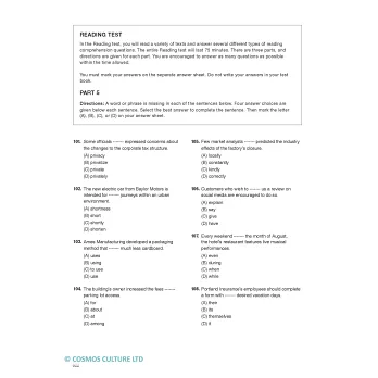 本實戰題庫不僅提供良好的練習題,還特別著重於測驗後的檢討與複習。在解題之後,可以使用附錄中提供的「核心字彙表」,確實熟悉重要字彙與常用片語。即使起初測驗分數不如預期,只要充分利用這些內容,逐漸掌握不熟悉的字彙和片語,很快就能成功考取目標分數。