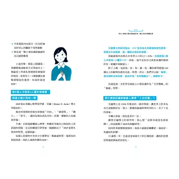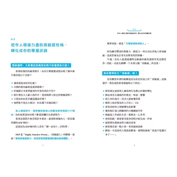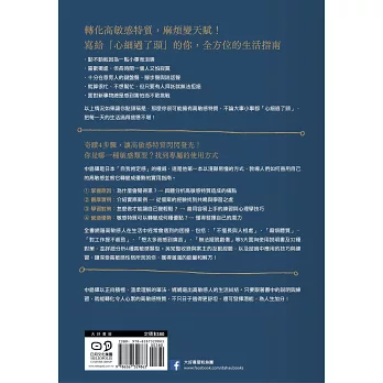 「高敏感特質可以是優勢,前提是我們找到善用這種特質的方法。願本書易懂可行的說明與方法,能讓更多高敏感者願意擁抱、並善加發揮自身這樣的天賦!」──蘇益賢|臨床心理師