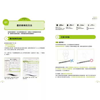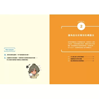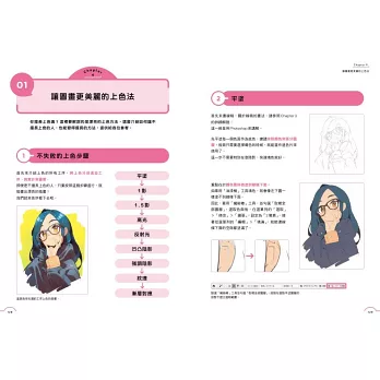 ◎全面的插畫指南:深入探討角色插畫的各面向,從線稿到上色,構圖到角色設計,一應俱全。