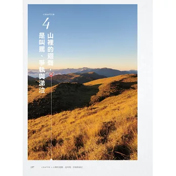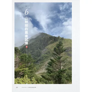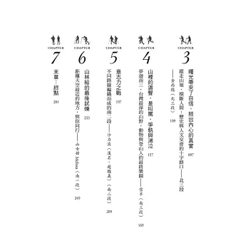 ☆ 書寫人與山的相遇,六位創作者──小說家高翊峰、企業家林廷芳、文史工作者金尚德、山岳報導者雪羊、布農族詩人沙力浪,還有山女孩Melissa,以不同視角切入,從北到南,逐步探索北一段、北二段、北三段,到南三段、南二段、南一段,寫出每一段的自然山林與人文歷史、屬於族群與個人的記憶,以及山岳教會我們的許多事。