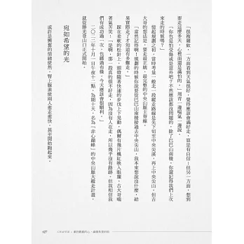 ☆ 描繪中央山脈的輪廓與肌理,帶讀者看見「護國神山」的巍峨壯闊、巧奪天工,以及它謎樣的臉龐。
