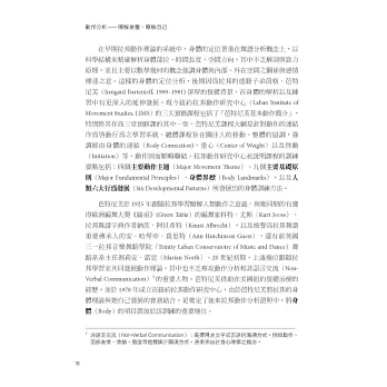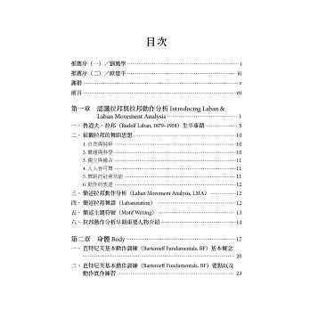 我於2018年夏自北藝大退休,2019年春始,接受北京舞蹈學院邀請,成為該校特聘教授,主要是運用拉邦動作分析,幫助舞蹈科學的發展,也訓練學生如何活用動作分析的學理以及實作。2022年,原本已經放棄的動作分析教科書,因為北京舞蹈學院許銳校長、人文學院王欣副院長的鼓勵,開啟了此書重展的命運。多年好友,舞蹈界大師歐建平也不時在公開場合催促、鼓勵。在我決定重新提筆時,我的勇氣以及自信,還來自於臺北紅樹林的舞蹈教室內,當年舞譜啟蒙恩師劉鳳學所創立的新古典舞團中,由我帶領且順利完成訓練的十三位拉邦動作分析國際證照師。在他們漫長的三年培訓中,我寸步不離相隨,雖然看來是關照,其實是共學、複習。我看到他們的好奇、質疑、追問、不解、探討的點滴過程,不僅再次享受到沐浴於動作分析學理中的奧妙,也更進一步感受到拉邦當年的思考過程和他對人體、動作、內在情緒和外在行為,不厭不倦的追尋。