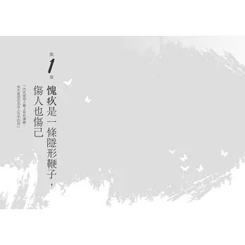 作者爬梳故事中角色的內疚感受,並根據自身生命經歷與諮商經驗,告訴讀者除了自發性的內疚外,還有社會文化架構下給予的「人工內疚」和罪惡感。透過小練習及積極的行動,為自己立下界線,分辨責任歸屬;同時看見他人的內疚與難處,以同理心放過自己、善待他人。