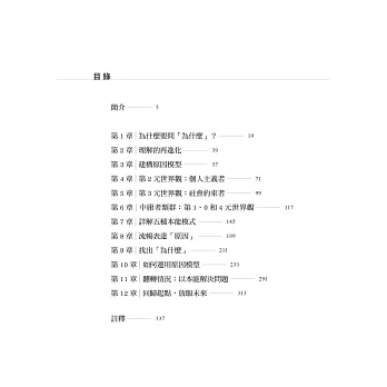 那麼《預知為什麼》將可提供你正確的工具,朝著正確的方向前進。透過原因模型蒐集到的知識,不但能拓展我們對資料的解讀,更可幫助企業、一般人與整體社會,深入且真且的彼此瞭解。