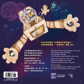 在故事中,地瓜更是不可缺少的關鍵,這普通又日常的蔬菜,卻是如此美味又有營養價值;雖然吃地瓜很容易放屁,但如果了解原因,就會知道放屁是健康的。就像緊張或害怕,也是一種正常的情緒,如果能鼓起勇氣面對自己的恐懼,你一定會發現,其實自己比想像中更強大呢!