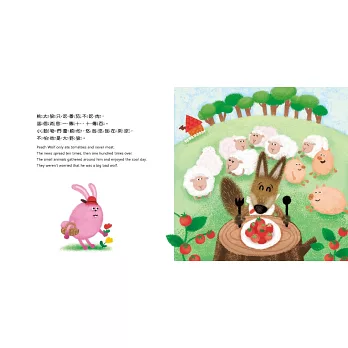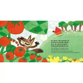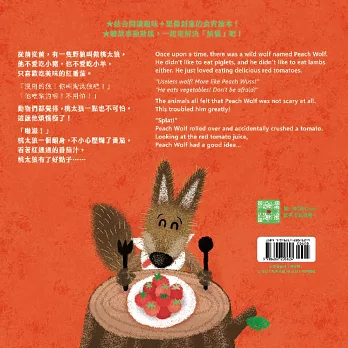 大野狼是童話故事中常見的反派角色,在喵伊充滿巧思的塑造下,成了喜歡吃番茄又溫柔的可愛「桃太狼」,與番茄的別名「狼桃」有一語雙關的巧妙,也是她創作這個故事的靈感來源喔!