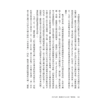 面對甚囂塵上的煽動性言辭及恐慌,何瑞恩、葛來儀、卜睿哲三位當今美國最知名的中國、台灣問題專家,在本書中用平和而公允的筆調,從歷史緣起到當代現狀,一一呈現台灣面對的挑戰和風險,並提出可行的具體步驟,使台灣能在國際舞台上更安全、繁榮且受到尊重。