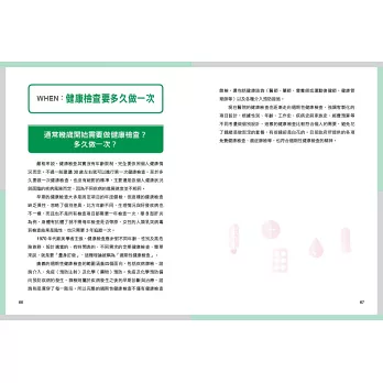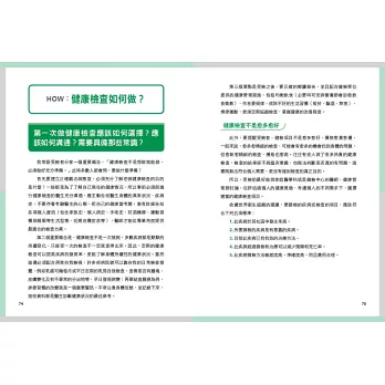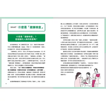 本書最重要的目的,是解答讀者健康檢查時心中常常產生的問題,藉由5W1H的假設問題加以解說,讓讀者可以更清楚健康檢查是什麼?哪些人需要做?為什麼要做?什麼時候應該做?可以去哪裡做?以及要做的時候該怎麼規劃執行?需要花多少錢做健康檢查?此外,也藉由實務經驗,提供關於如何進行健康檢查以及從中受益的實用資訊,包括健檢的常見名詞、臨床意義、異常追蹤的建議與參考,不要看到紅字就心生恐慌。