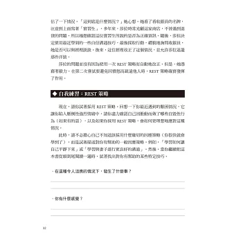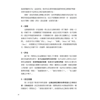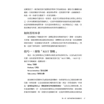 .REST策略:放鬆、評估、設定意圖,並採取行動,這是改變任何會造成問題或自毀性行為,且不衝動行事的第一步。