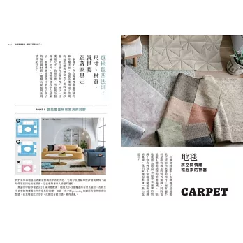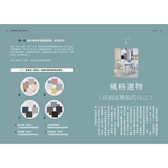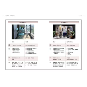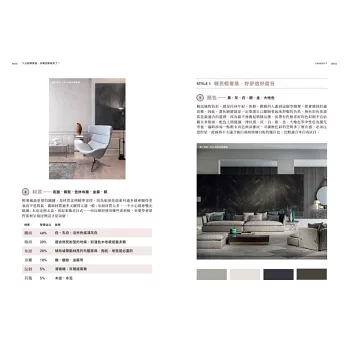 全書從北歐、工業、輕奢、現代、新美式、日系,元素、色彩、造型、比例、尺寸,幫你拆解剖析,深入說明,讓腦中的風格樣貌不再似是而非。此外,也協助你一次弄懂家具、燈具、櫃子、抱枕、地毯、畫作……8大明星軟件的特質與交錯搭配法則。書中還以實際案例步步詳解,透過完整思考過程,看空間如何形塑成功。