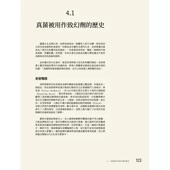 真菌與生物和環境的合作方式五花八門,更在人類的生活中扮演不可或缺的角色。本書除了介紹它的來龍去脈,作者在有關真菌作為「致幻劑」的歷史和研究上有更多的著墨。那些存在於傳統儀式中的迷幻物質,現已開始有部分被作為醫療使用。你能想像真菌在治療精神疾患上的貢獻嗎?這只是一個開始,更多還未被發現的真菌物種還能如何改變人類生活,很值得期待!