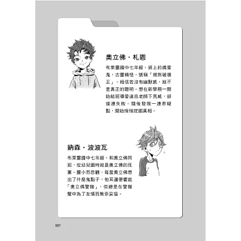 布萊靈國中七年級。班上的搗蛋鬼,古靈精怪,號稱「規則破壞王」。相信若沒有幽默感,就不是真正的聰明。想在新學期一開始給班導愛達克老師下馬威,卻接連失敗。隨後發現一連串疑點,開始悄悄挖掘真相。