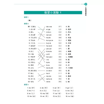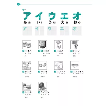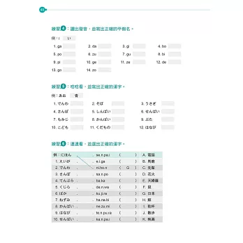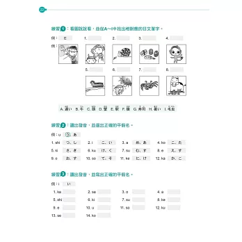 *所有平假名及片假名練習的單字皆選自「日本語能力檢定」用字,對於奠定日檢基礎有相當大之助益。