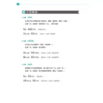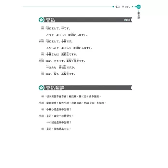 *各課會話文均採用日常生活中實際之對話內容,搭配隨書音檔使用,讓學生可以隨時隨地掌握正確的口語發音。
