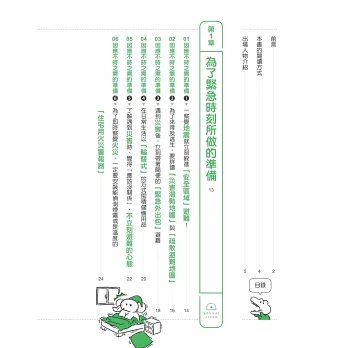雖然無法預測災難什麼時候會發生,但我們可以為了防止釀成更大的災害,做好提早預防的準備。此外,居家事故也是常見的意外,這本書列舉了藏在日常生活中的危險,教你平時能夠事先做好哪些防範措施。