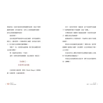 馬醫師有豐富的臨床實務經驗,因此能整理出患者經常在門診出現的各種「言行不一」,並透過對人性的深入理解與解析,幫助我們看見在這些不一致底下的真正需求。