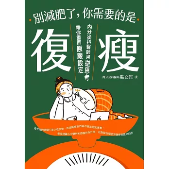 假如你已經試過無數種減肥菜單、流行飲食法,仍舊瘦不下來,或許你需要的是馬醫師的這本書,你只是需要學會更愛自己而已。