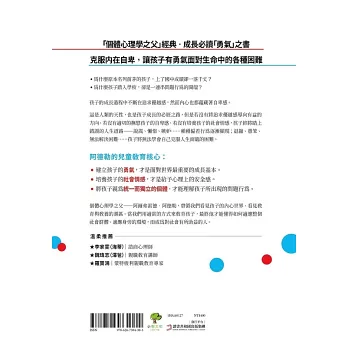 個體心理學之父──阿爾弗雷德‧阿德勒,帶領我們看見孩子的內心世界、看見教育與教養的誤區。當我們用適當的方式來教育孩子,最終他才能懂得如何適應整個社會群體、適應身旁的環境,而成為對社會有所助益的人。