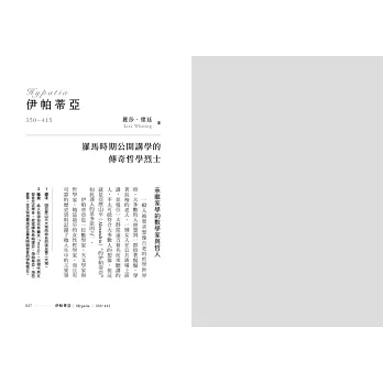 ‧每章皆提供進階閱讀資訊,書末更附有其他94位女哲學家名單,邀請讀者繼續探索。