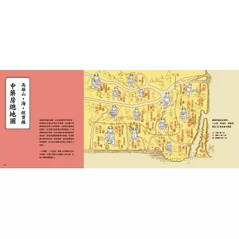 本書再次邀請林建志老師繪製地圖與插畫,妙筆重現神農氏在不同藥房場景替客人抓藥的畫面。細緻插圖交融輕盈的色彩與版面設計,值得收藏。