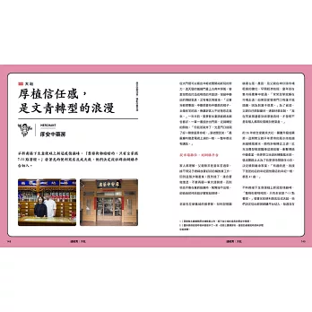 老店的老,也在崇尚自然、反璞的觀念下轉化為新。本書除了記錄下難得的口述故事,造訪中亦發現許多可貴的創生案例;枸杞餅乾、藥草球、紅棗脆片、吸嘴袋包裝的漢方飲料……結合當代人繁忙的生活場景,交融傳統智慧與美感、實用設計,探見中藥房下個十年的可能性。
