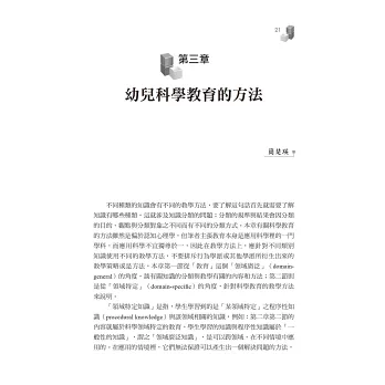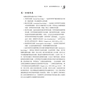 筆者認為職前教育學習的內容要具有多元性、整體性、概括性方面的知能,強調的是對該領域知能廣度上的認識。屬於此類型的讀者可以藉由本書第二篇的各章案例來操練自己科學教育之教學經驗,並從中獲取對幼兒科學教育的內容與教學方法之了解與體驗。Livingston與Borko(引自Gagn「精煉」的機會,使之能成為一位有效能的教師。因此,請多運用每章結束前的「討論與分享」之活動設計。