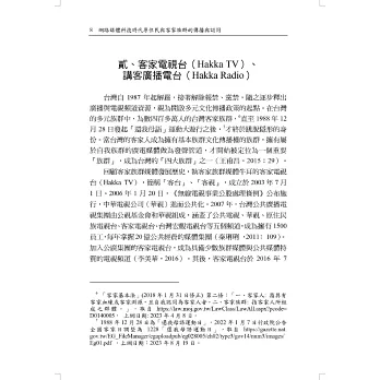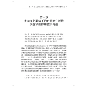 時至今日,21 世紀已走了近四分之一,全球各地多元文化與傳播媒體科技交織演進。環顧我們身處的大千世界,文化傳播時刻在發生。舉凡傳統媒體與網路媒體科技在日常生活扮演之資訊告知、守望環境、娛樂、教育、社交之功能益發彰顯,同時也顯見族群媒體扮演中介傳播管道的重要角色與不可或缺。「文化如水,人類如魚」,1 人類(魚類)生活中不能缺少文化(水),若被換置到其他文化(水)中,需要長時間才能適應(習慣)跟理解。循此道理,身處多元文化社會,實須透過族群媒體傳播族群文化,除了引介不同族群文化,也能增進自身族群文化認同,降低族群間的扭曲誤解,並減少彼此適應及理解的時間,以促進相互肯認、建立共識。在文化與科技全球在地化的今天,讓我們共向期許台灣的原住民與客家族群媒體持續致力台灣多元文化的傳播與再現,扮演族群認同構建的重要功能,展現其在媒體產業的翹楚地位及領頭羊角色,引領多元文化世界潮流,發揮永續經營發展之軟硬實力與全球影響力。