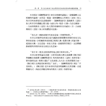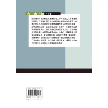 筆者大一到大四參加東海大學山服社團,每逢寒暑假到部落蹲點,那是青春歲月中最美好的歷練跟回憶。在美國紐約州立大學(SUNY-Buffalo)就讀研究所時,筆者有機會跟來自世界各地的教授、同學們實踐文化傳播交流,來自烏干達(Uganda)的喬治同學說:在他的國家,身材窈窕的女生反而不受歡迎;美國同學史考特捏著鼻子抱怨在研究室公用微波爐中加熱的韭菜水餃味道太嗆;韓國同學敬熙Song的統計跟料理能力一流;日本學長信之Chikudate不吝提供Galileo研究數據;烏克蘭籍學生尤金(Eugene)在傳播101課程上最好學多問;巴奈特(Barnett)指導教授中外歷史如數家珍、師母對任教學校的弱勢孩童付出大愛。在淡江大學任教期間聆聽交工樂隊創作、參與原住民服務講座。擔任香港浸會大學(HKBU)訪問學者時走訪大澳漁村及客家圍村。在陽明交大任教期間,執行人社中心蘭嶼研究計畫、客委會研究計畫;指導山服社團服務學習;教授多元文化與傳播課程。訪問加拿大西安大略大學(Western U.)時體驗第一民族POW WOW儀式…筆者受惠於人生旅途中這許多文化震撼、洗禮與啟發,由衷感謝;身處融合傳統與現代、結合經典與新興媒體科技的學術環境,深感幸運。本書之所以能付梓出版,除了謝謝韋伯文化國際出版有限公司,筆者要向所有貴人、師長、同學、同事、助理、受訪者及親朋好友們致謝感恩…maelanenga, masalu, mhway su, takdrengesu, a yoy, array, many thanks, merci beaucoup, gam-sa-ham-ni-da, arigatōgozaimasu, 唔該晒,承蒙您,恁仔細,謝謝,…