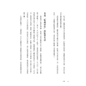 2.作者親自被中國以「監視居住」及間諜迫害,而他決定揭露這一切,讓人看到中國迫害人權的各種方式,從禁止聯繫外界、甚至禁止看太陽的完全隔絕,到監獄糟糕的衛生環境與不良的居住環境,和其他同樣被居住的在中外國人、被清算的高官與少數民族。