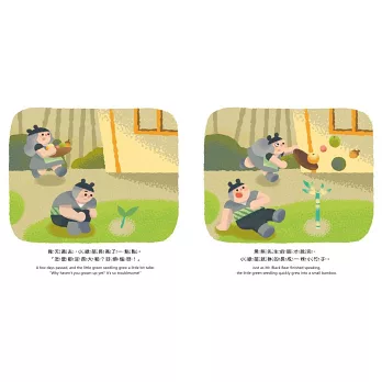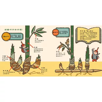 從以前就滿喜歡吃竹筍的我,這才知道,原來臺灣一年四季都有不同品種的竹筍可以品嘗。把握繪本取材的機會,跟著阿伯到田裡一起挖竹筍,只是挖了整整一水桶,也不見神奇竹筍的蹤影。