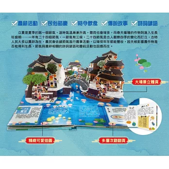 ★大場景立體頁:多角度展現節氣的天文氣候、民俗活動、節日慶典、傳說故事等,讓孩子細細體會每個細節。