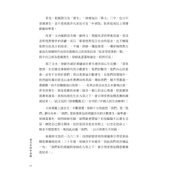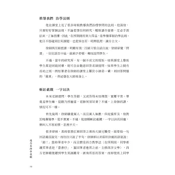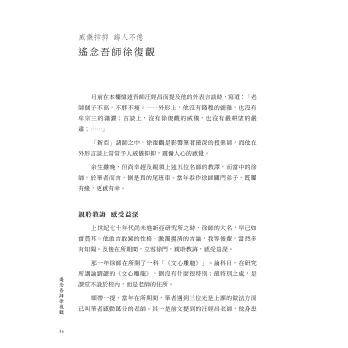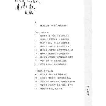 過去兩年,經不起各方敦促,認為不把這些文章編輯成書,根本愧對列位先師,更有負學子所為,只得奮起精神,重新檢視,並酌增原文,補述不可或缺的資料。當中增潤多至兩萬字的,是首篇亦即介紹業師汪經昌的拙文,蓋因今天認識汪師其人其學的後輩,稀若晨星。如此著墨,無非是要在濁流之外另呈清流。第二篇亦即簡介業師徐復觀的拙文,也大幅增至一萬六千字,主要記述他不畏強權,無懼霸凌的鬥士精神;欽敬他一支健筆,單挑各界名士文人。