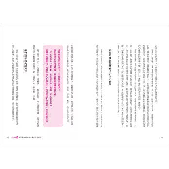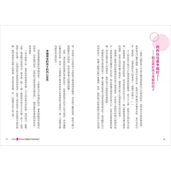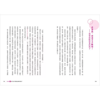 在從孩子的說話習慣中,更認識到他們的內心世界後,針對不同性格特質的孩子,一定要分別給予適切的對話,才能借力使力讓他們順性發展。容易不安的孩子,需要累積他對自己、父母的信任感;喜歡探索世界的孩子,可以藉機提升他的解決問題能力;情緒化的孩子,則以培養同理能力為優先……父母給予正確的回應,將能帶領兒女開啟不一樣的人生。