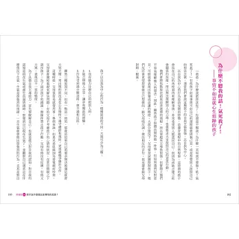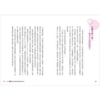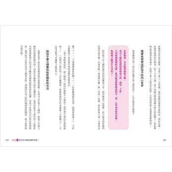 作者在育兒現場與親子諮商領域擁有近二十年的資歷,而在豐富的經驗中她發現,不論是什麼樣個性的孩子,教養的關鍵都在於孩子的言語。因此作者在本書中,以兒童心理學、九型人格學等當代心理學理論為基礎,帶你放下父母的觀點、改以孩子的視角出發,去理解孩子們表達不清楚的情緒,或說不出口的想法,讓你更深入寶貝孩子內心世界的秘密。
