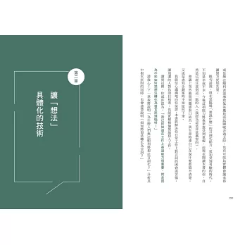 第二章,則要介紹「如何才能把想法轉化為言詞」,以及「為什麼要用A4紙」,更加具體地解說練習的結構。